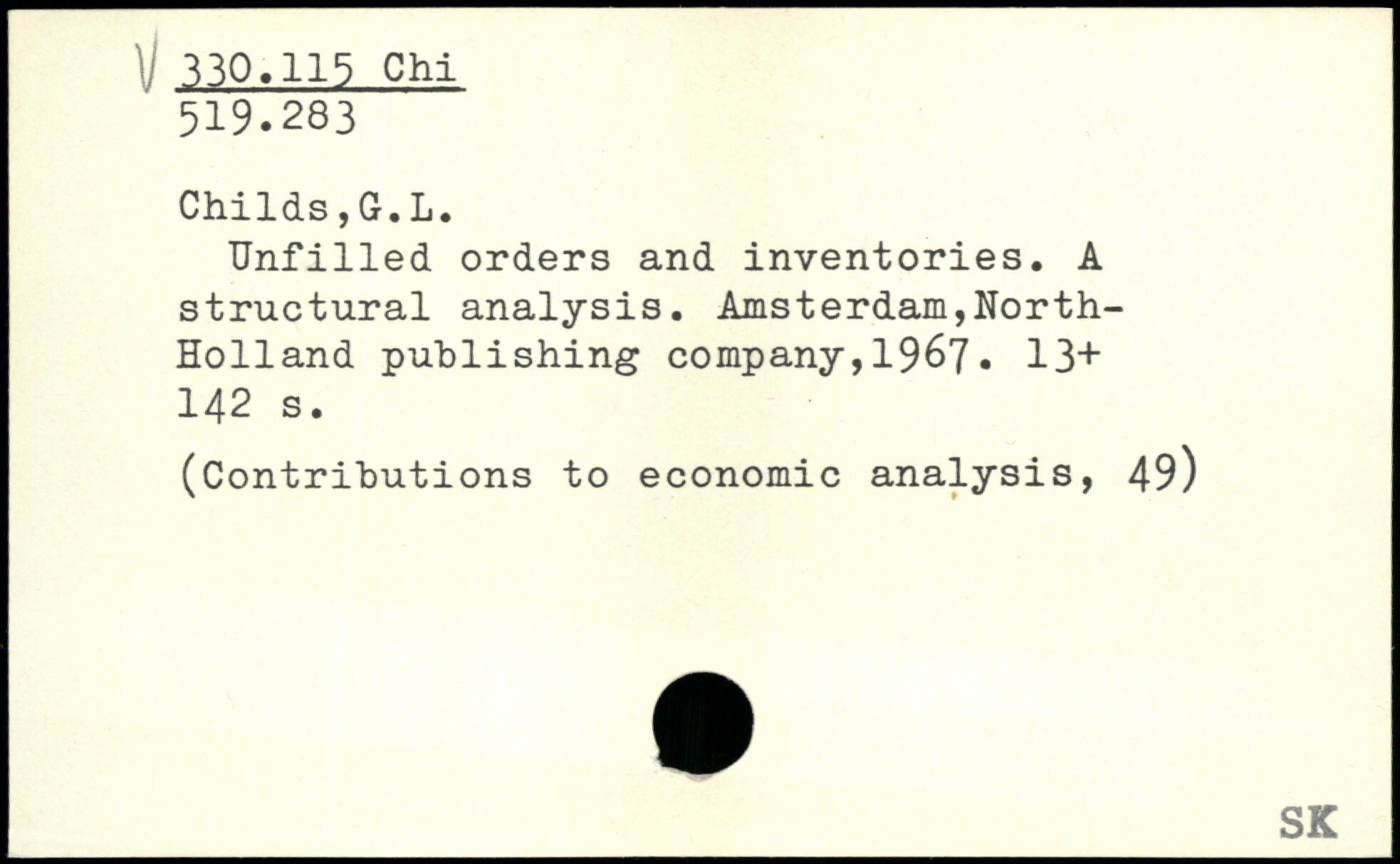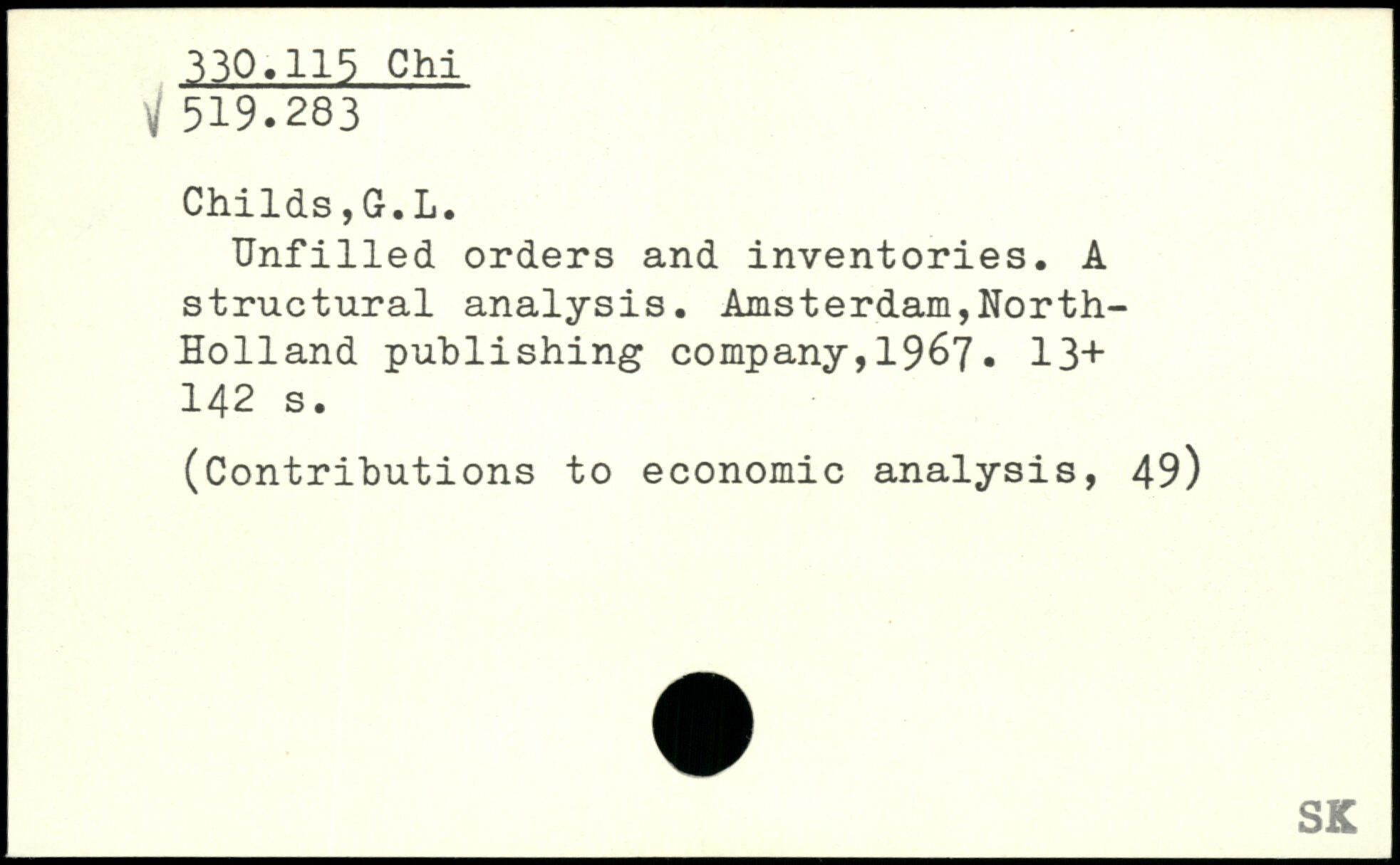 Unfilled orders and inventories. A structural analysis. Amsterdam,North-Holland publishing company,19&7. 13+