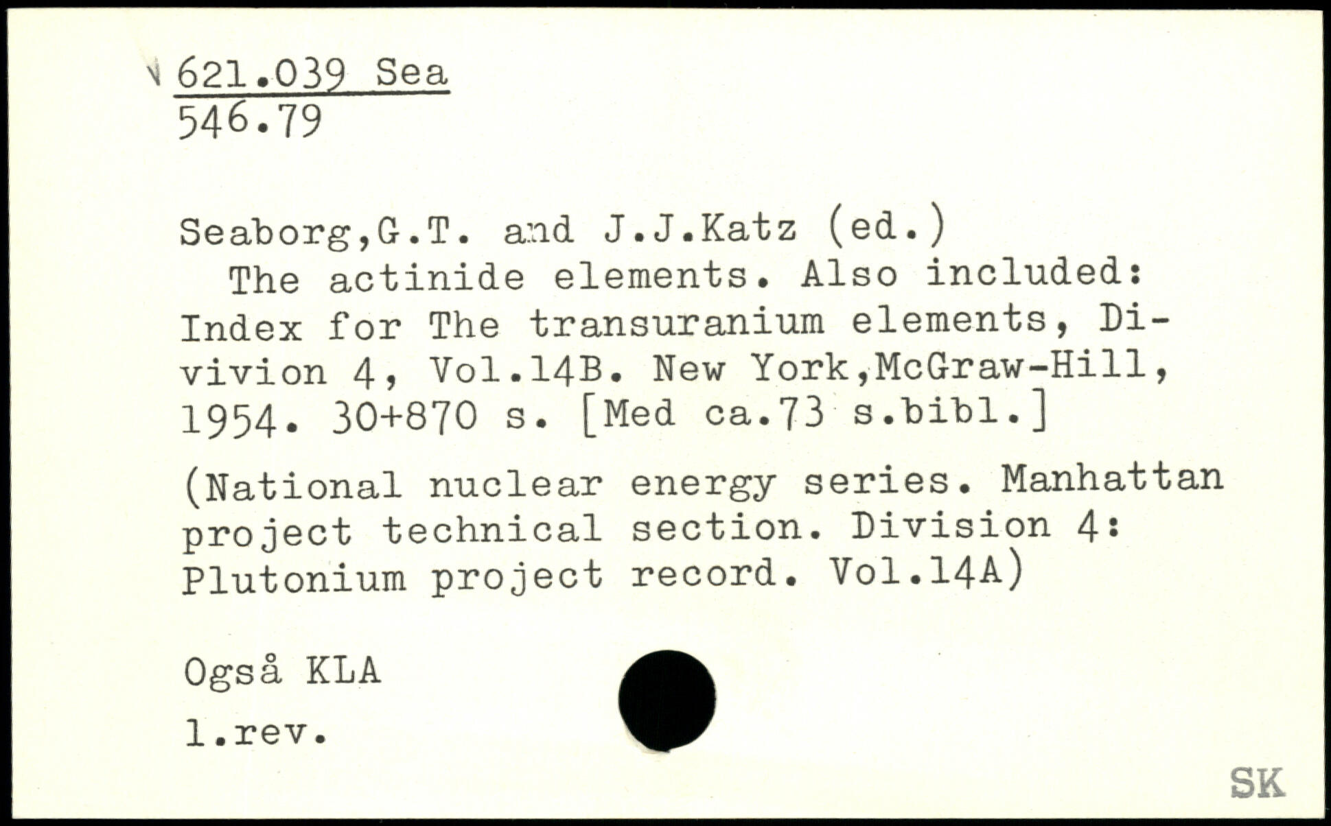 The actinide elements. Also included: Index for The transuranium elements, Di-vivion 4