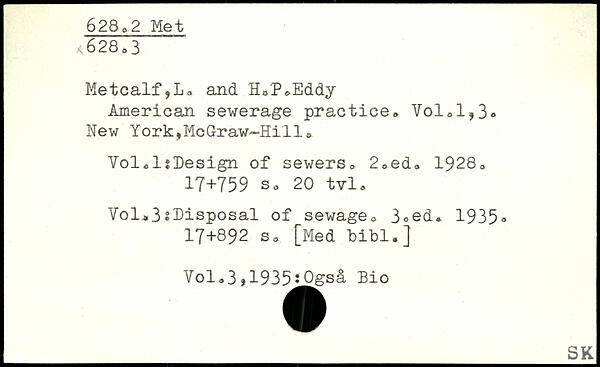 Metcalf,La and H,P.Eddy American sewerage practice.