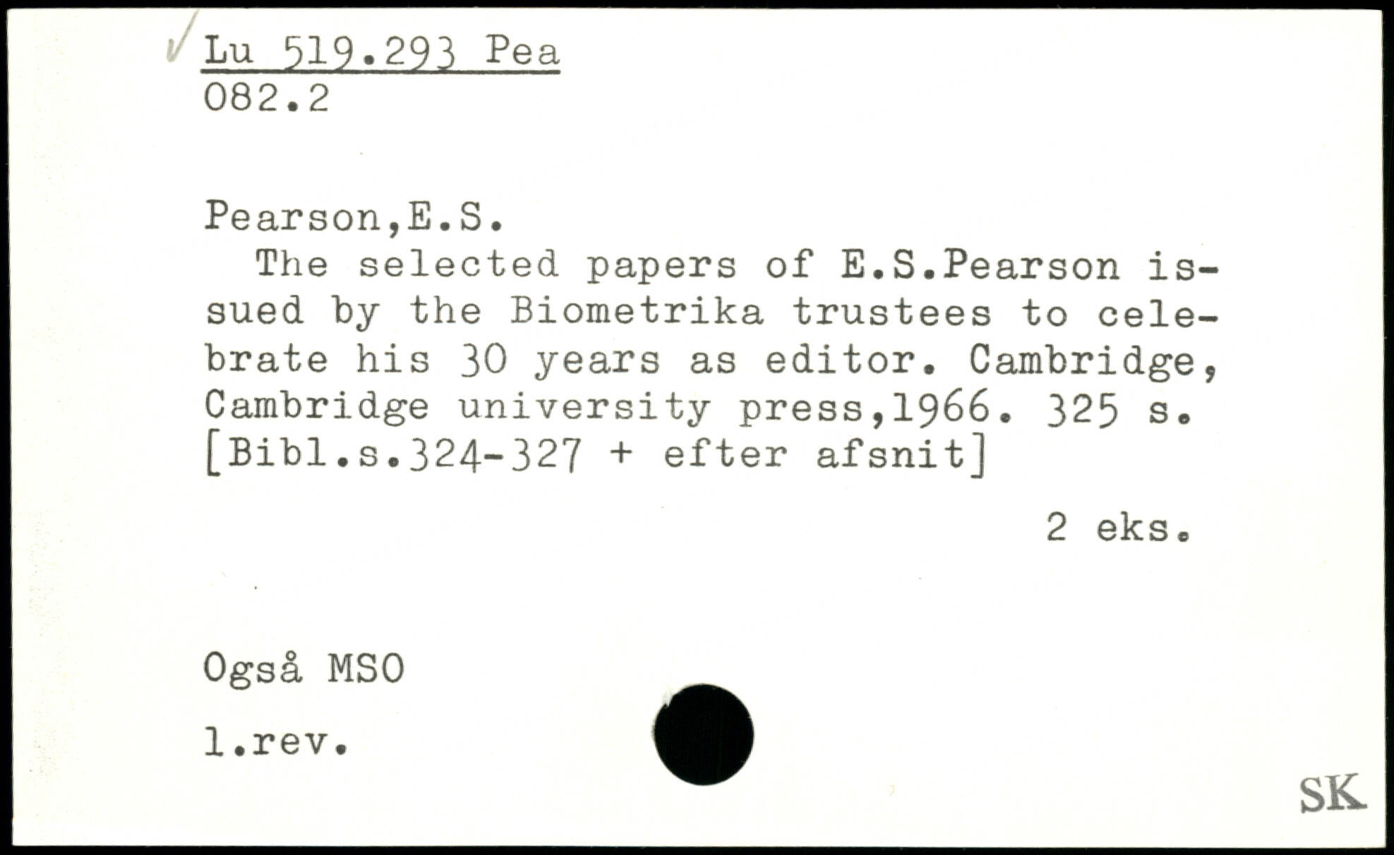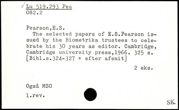 The selected papers of E.S.Pearson issued by the Biometrika trustees to celebrate his 30 years as editor.