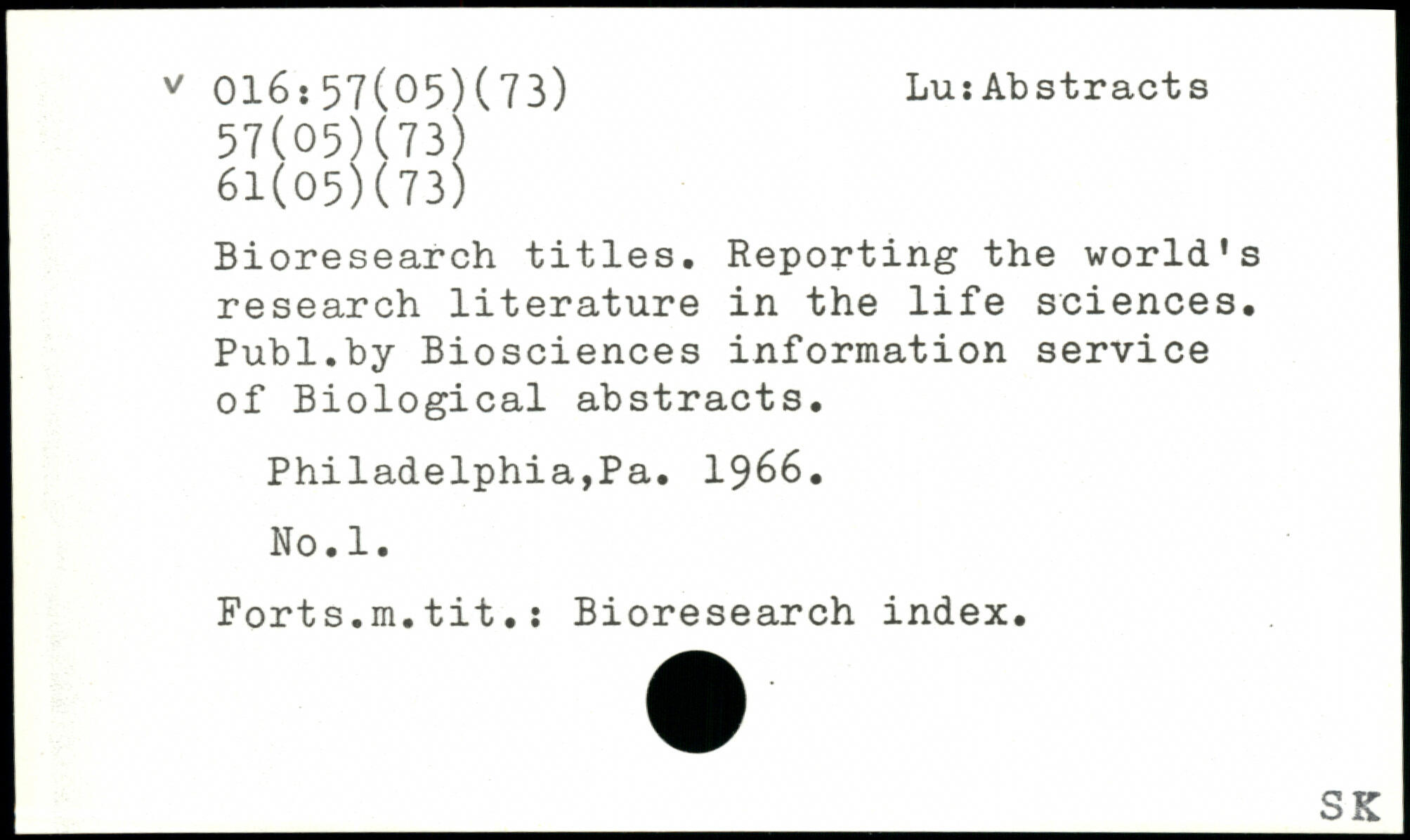 UDK: 016:57(05)(73), 57(05)(73), 61(05)(73)