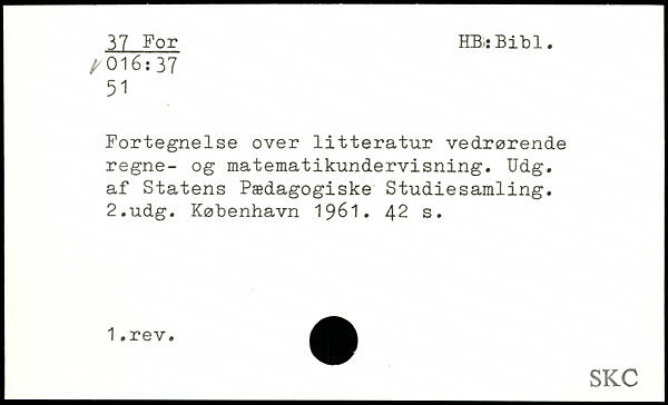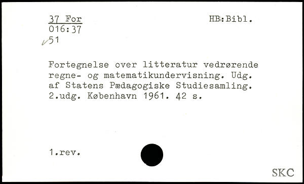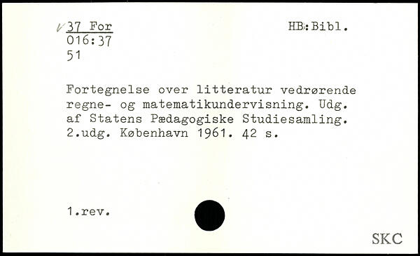 Fortegnelse over litteratur vedrørende regne- og matematikundervisning. Udg. af Statens Pædagogiske Studiesamling.