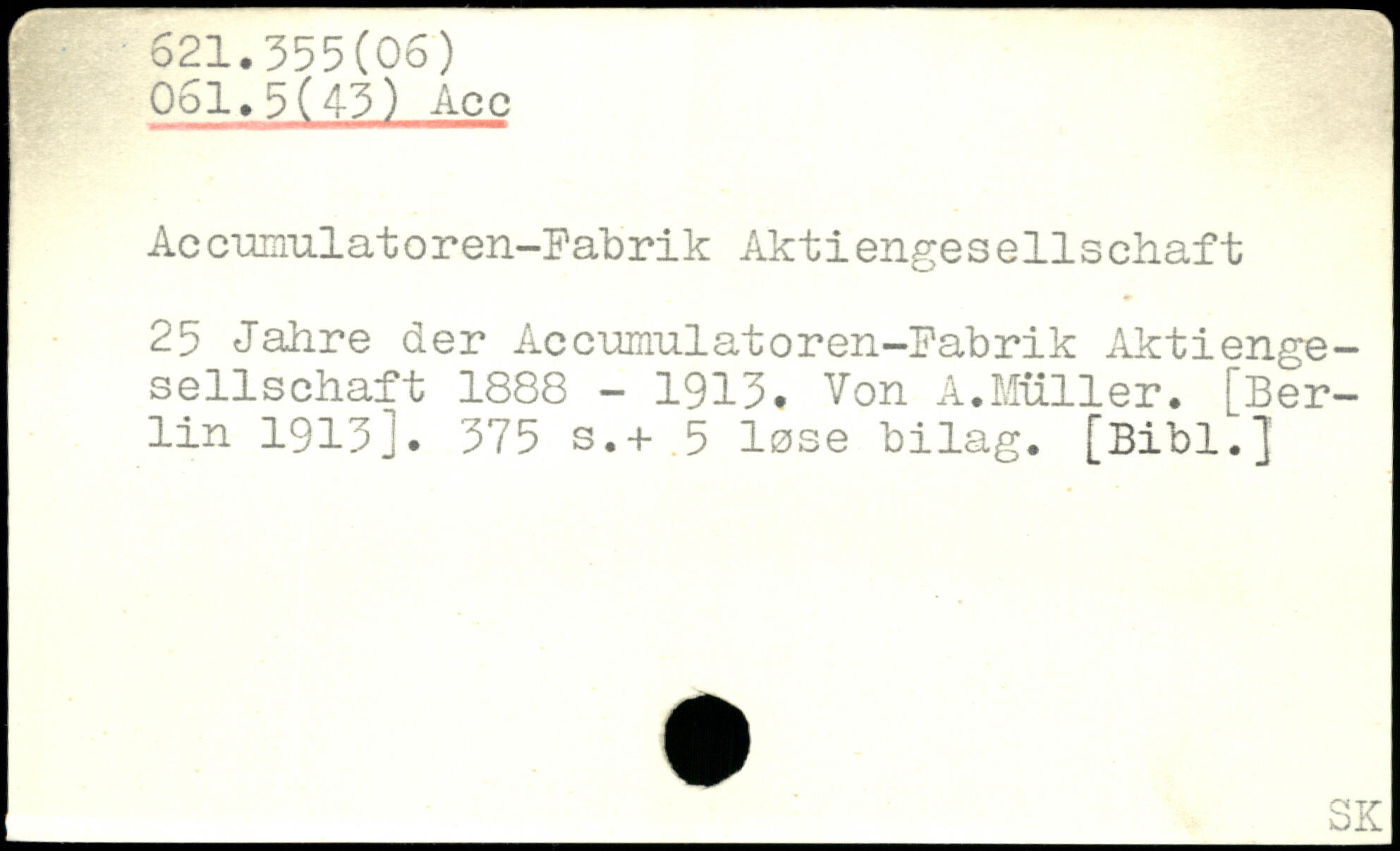 Accunmlatoren-lPabrik Aktiengesellschaft 25 Jahre der Accumulatoren-Fabrik Aktiengesellschaft 1888 - 1913. Von A.Müller.