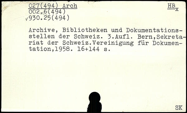 Archive, Bibliotheken und Dokumentationsstellen der Schweiz.
