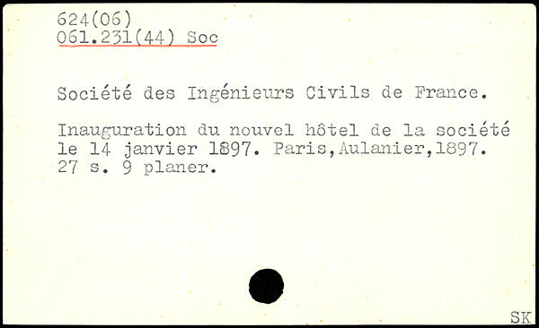 Société des Ingénieurs Civils de France. Inauguration du nouvel hôtel de la société le 14 janvier 1897.
