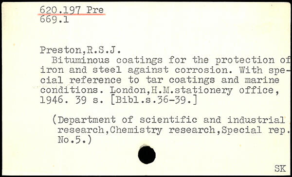 Bituminous coatings for the protection ol iron and steel against corrosion. With special reference to tar coatings and marine conditions. London,H.M.stationery office, 1946.
