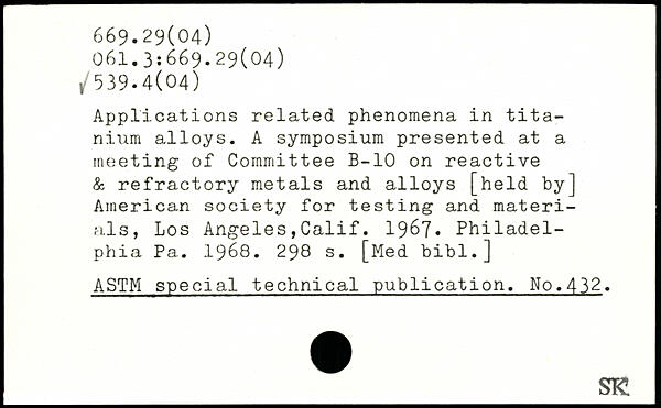 Applications related phenomena in titanium alloys. A symposium presented at a meeting of Committee B-10 on reactive \ & refractory metals and alloys [held by] American society for testing and materials, Los Angeles,Calif. 1967. Philadel- ] phia Pa. 1968.