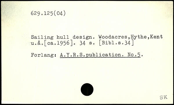 Sailing hull design. Woodacres,Hythe,Kent u.å0[cao1956]o