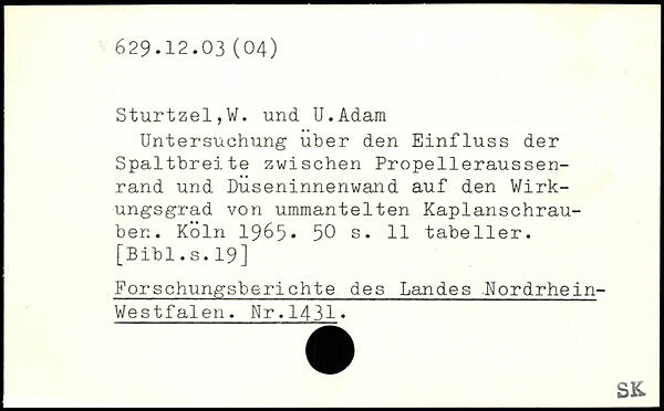 Untersuchung über den Einfluss der Spaltbreite zwischen Propelleraussen-rand und Duseninnenwand auf den Wirkungsgrad von ummantelten Kaplanschrauben.