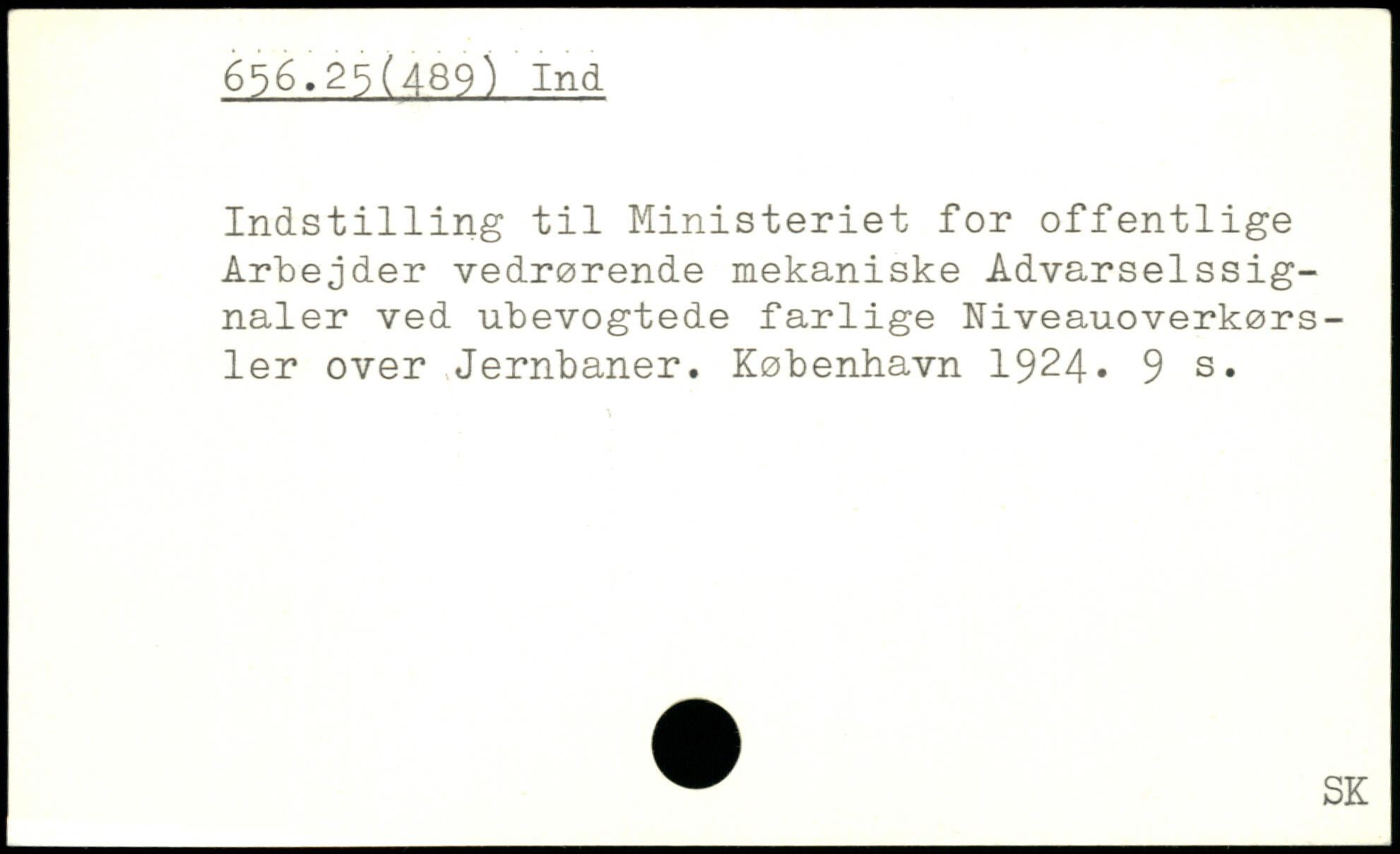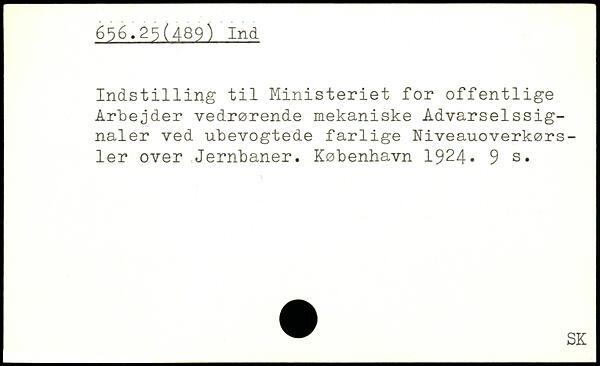 Indst1111ng til Ministeriet for offentlige Arbejder vedrørende mekaniske Advarselssignaler ved ubevogtede farlige Niveauoverkørsler over Jernbaner.