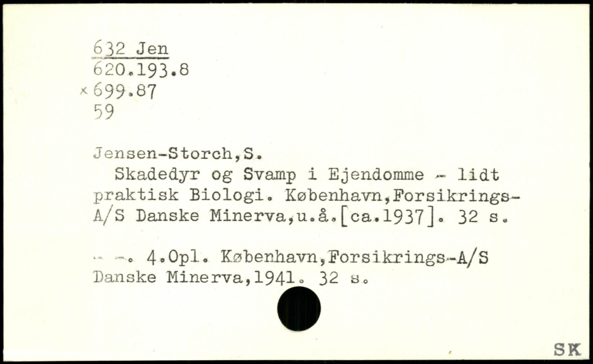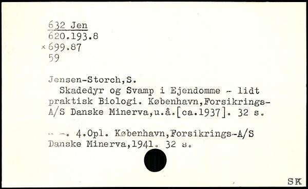 Skadedyr og Svamp i Ejendomme - lidt praktisk Biologi. København,Forsikrings-å/s Danske Minerva,u.å.[ca.1937]