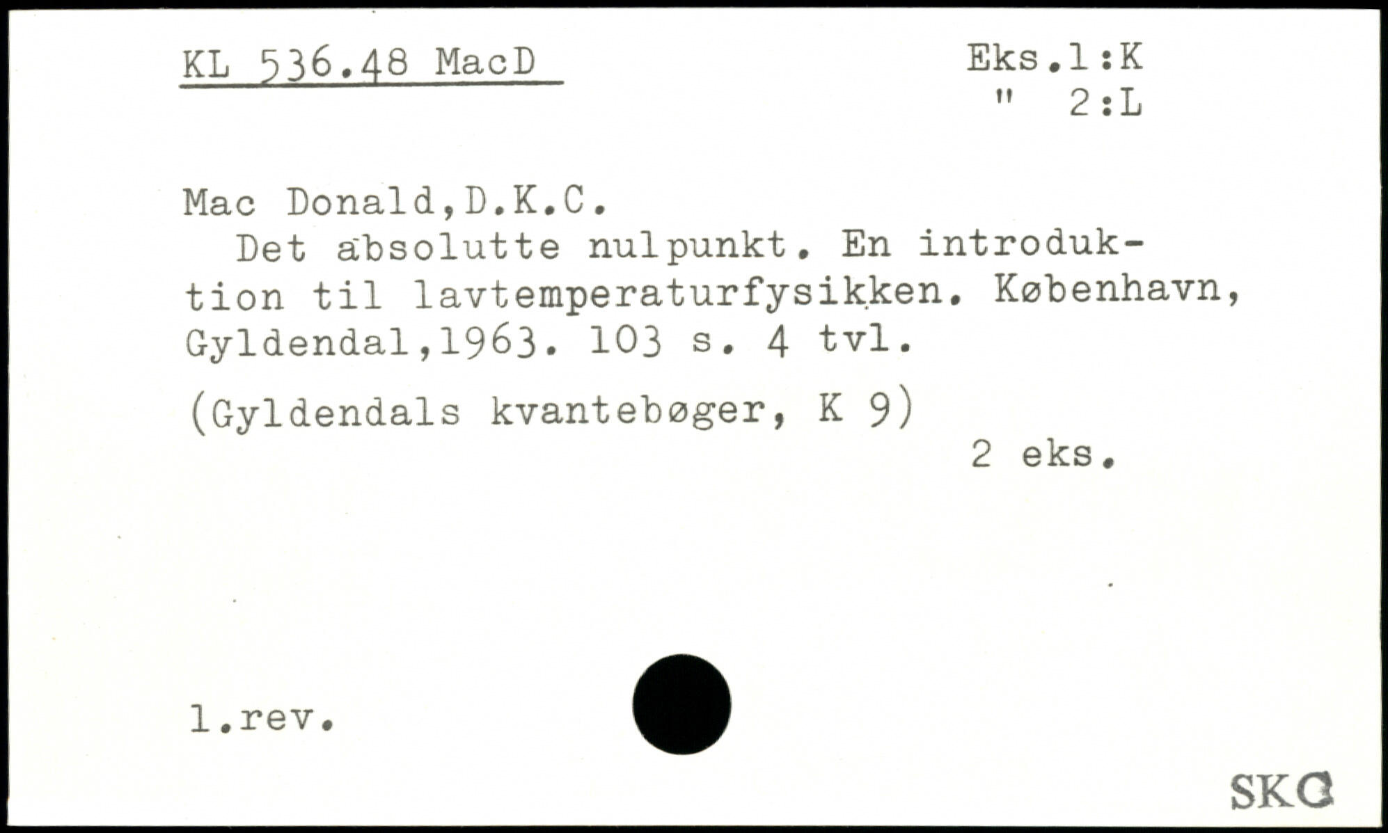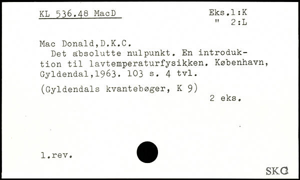 Mac Donald, D.K.C. Det absolutte nulpunkt. En introduktion til lavtemperaturfysikken.
