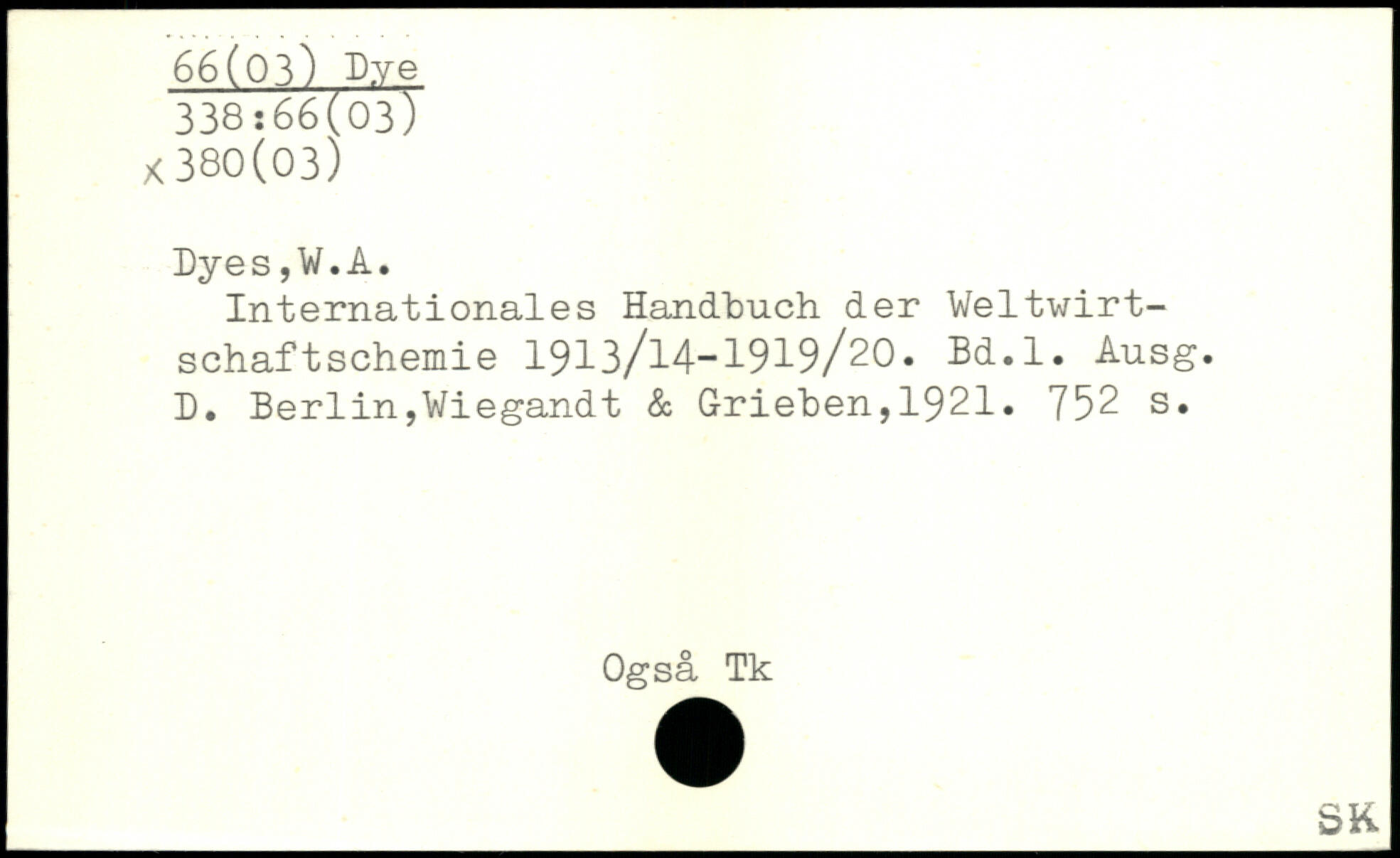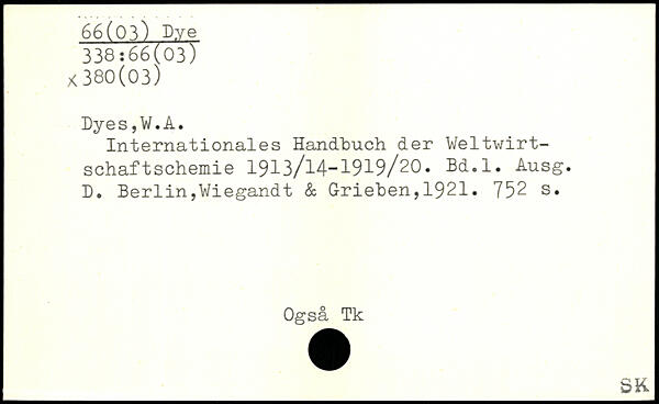 Internationales Handbuch der Weltwirtschaf tschemie 1913/14-1919/20. Bd.l. Ausg. D.