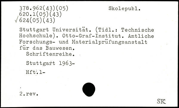 Stuttgart Universität. (Tidl.: Technische Hochschule). Otto-Graf-Institut. Amtliche Forschungs- und Materialprüfungsanstalt für das Bauwesen. Schriftenreihe.