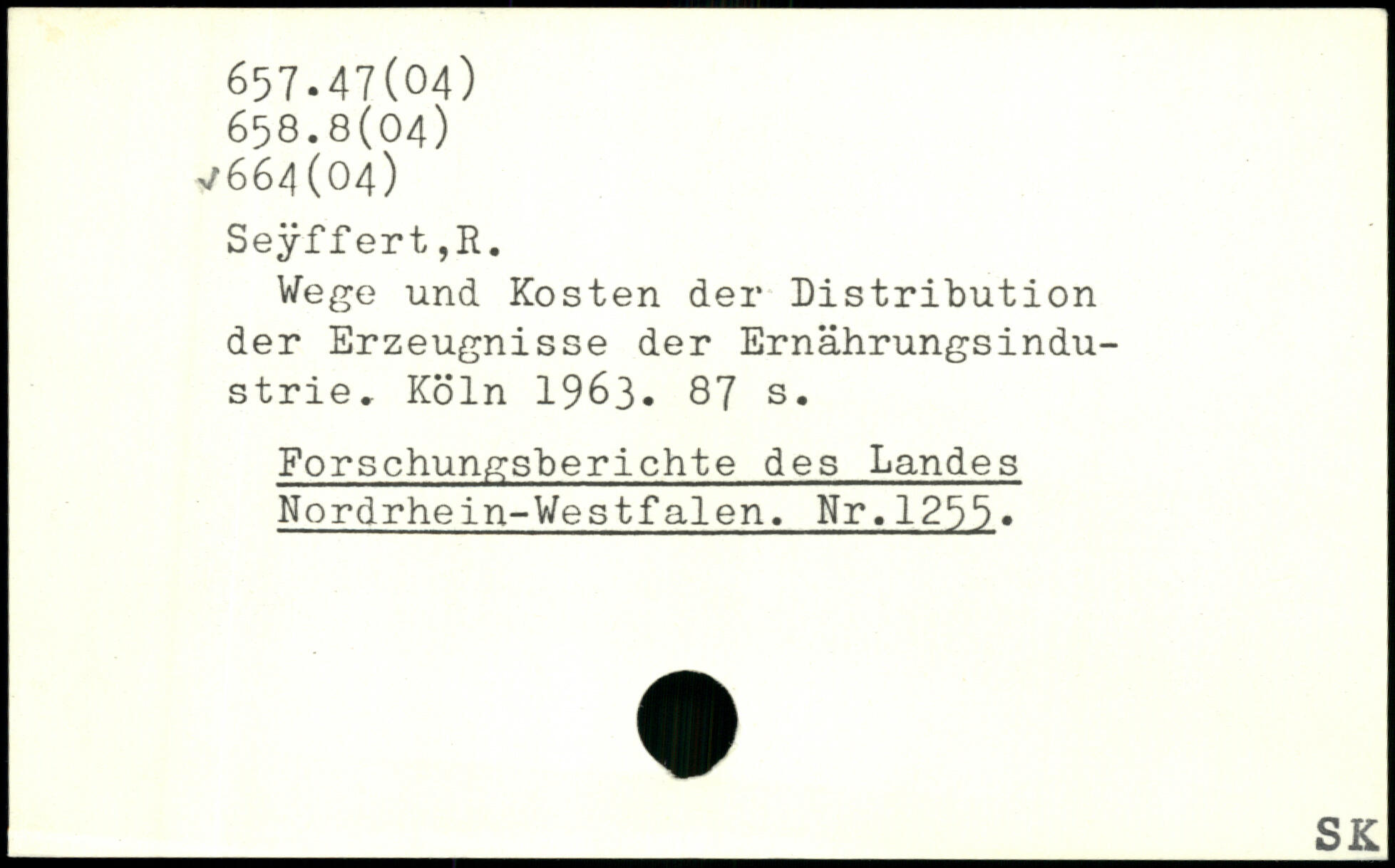 Seÿffert,R. Wege und Kosten der Distribution der Erzeugnisse der Ernahrungsindustrie.