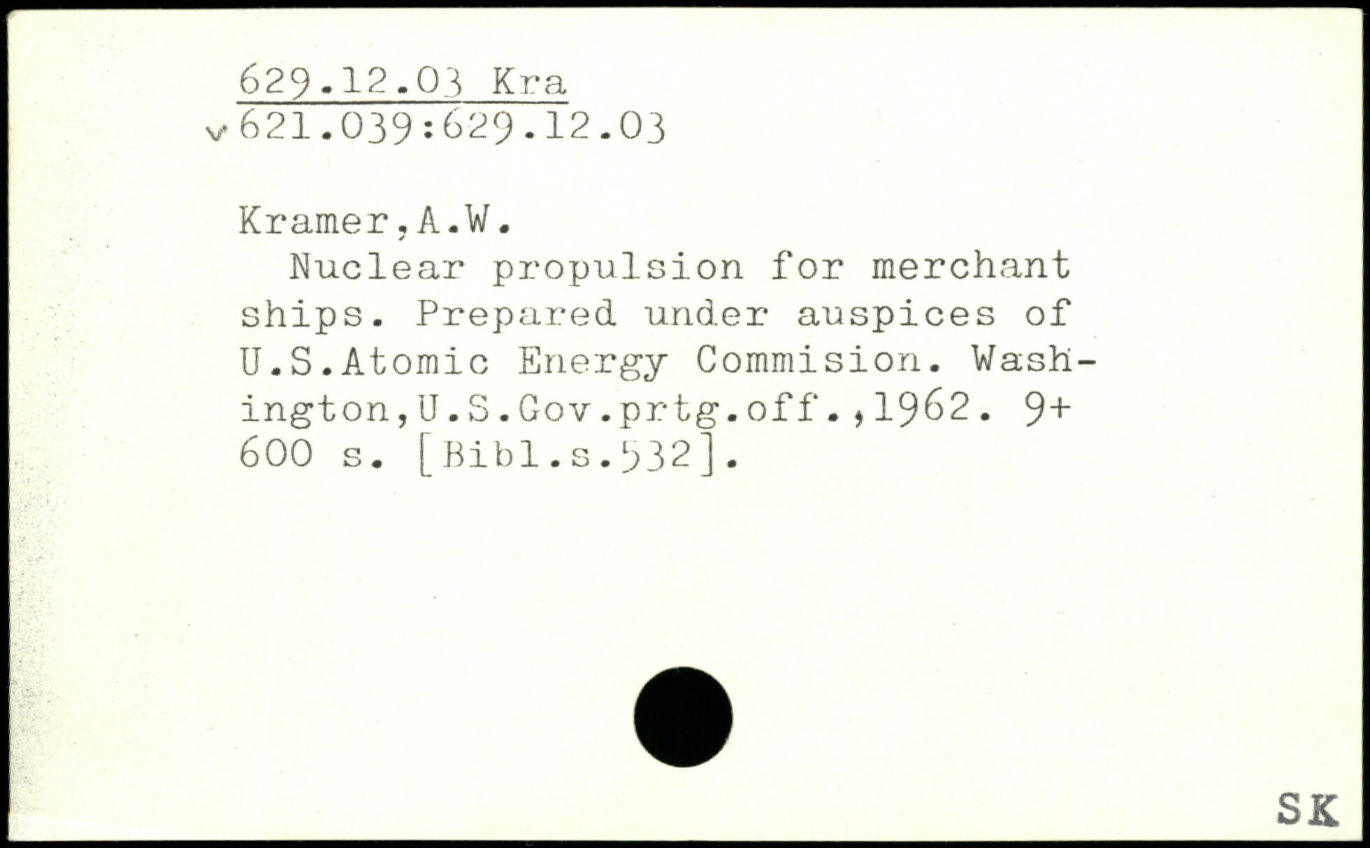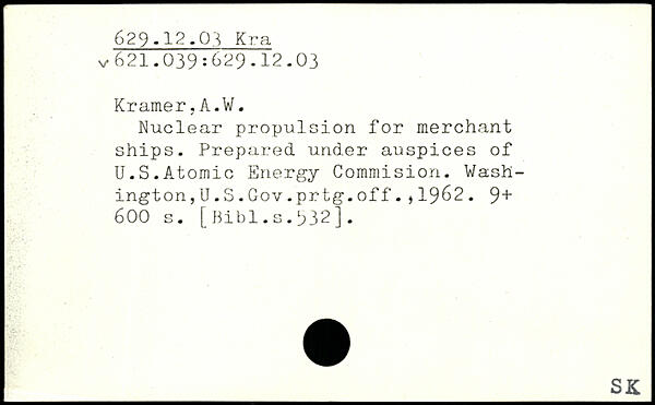 Nuclear propulsion for merchant ships. Prepared under auspices of U.S.Atomic Energy Commision. Wash-ington,U.S.Gov.prtg.off.,1962. 9+