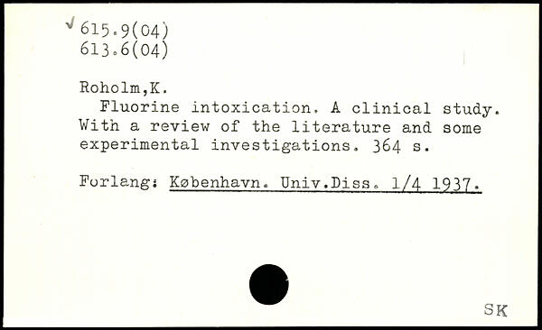 Fluorine intoxication. A clinical study. With a review of the literature and some experimental investigations.