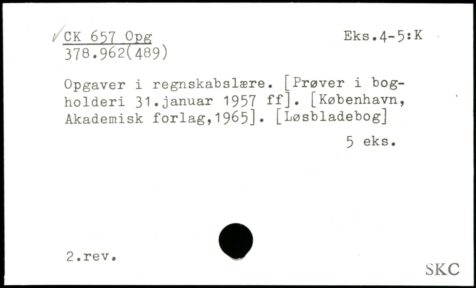 Opgaver i regnskabslære. [Prøver i bogholderi 31.januar 1957 ff].