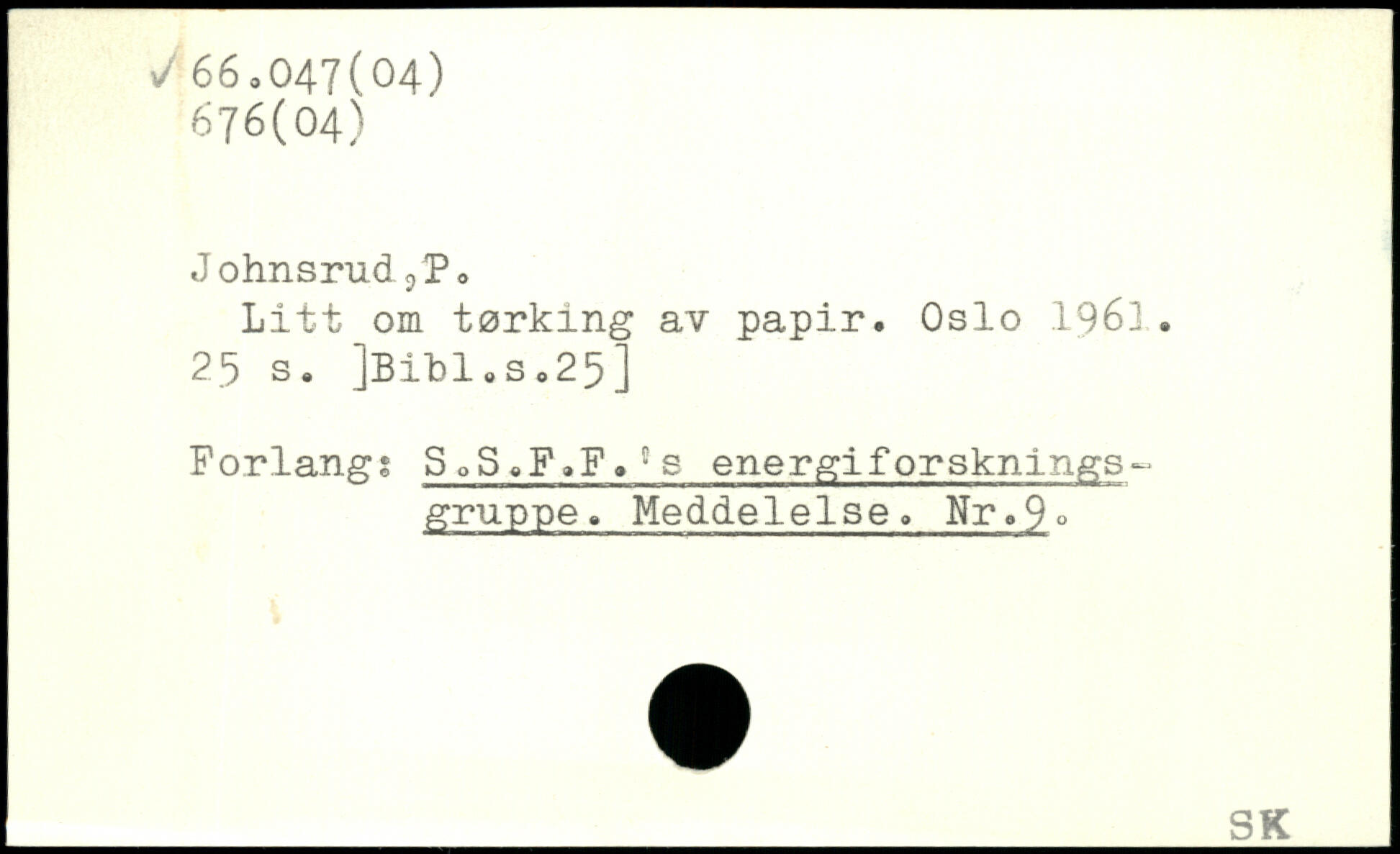 J ohnsrudpP, Litt om tørking av papir. Oslo 1961.