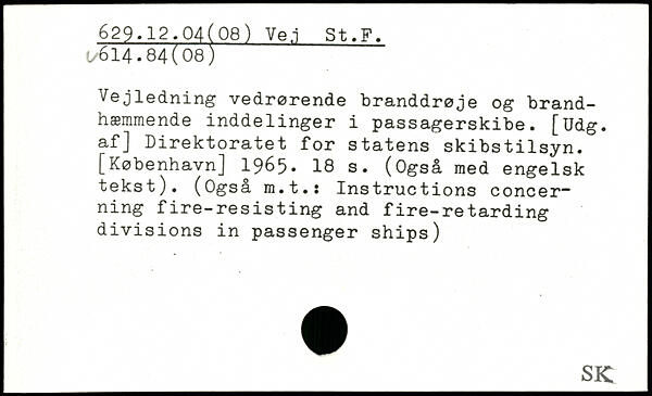 Vejledning vedrørende branddrøje og brandhæmmende inddelinger i passagerskibe. [Udg. af] Direktoratet for statens skibstilsyn.