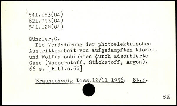 Die Veränderung der photoelektrischen Austrittsarbeit von aufgedampften Nickelund Volframschichten church adsorbierte Gase (Wasserstoff, Stickstoff, Argon).