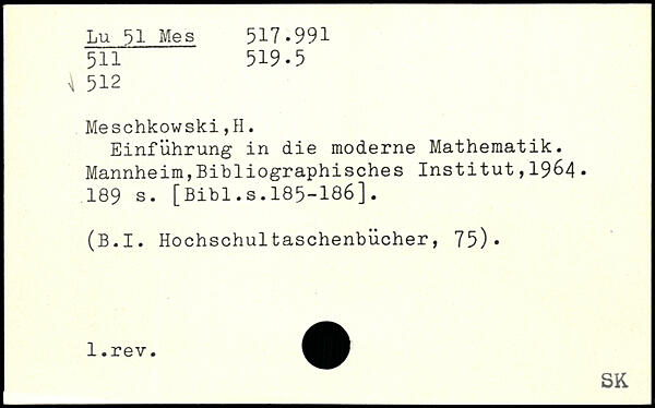 Einführung in die moderne Mathematik. Mannheim,Bibliographisches Institut,19&4.