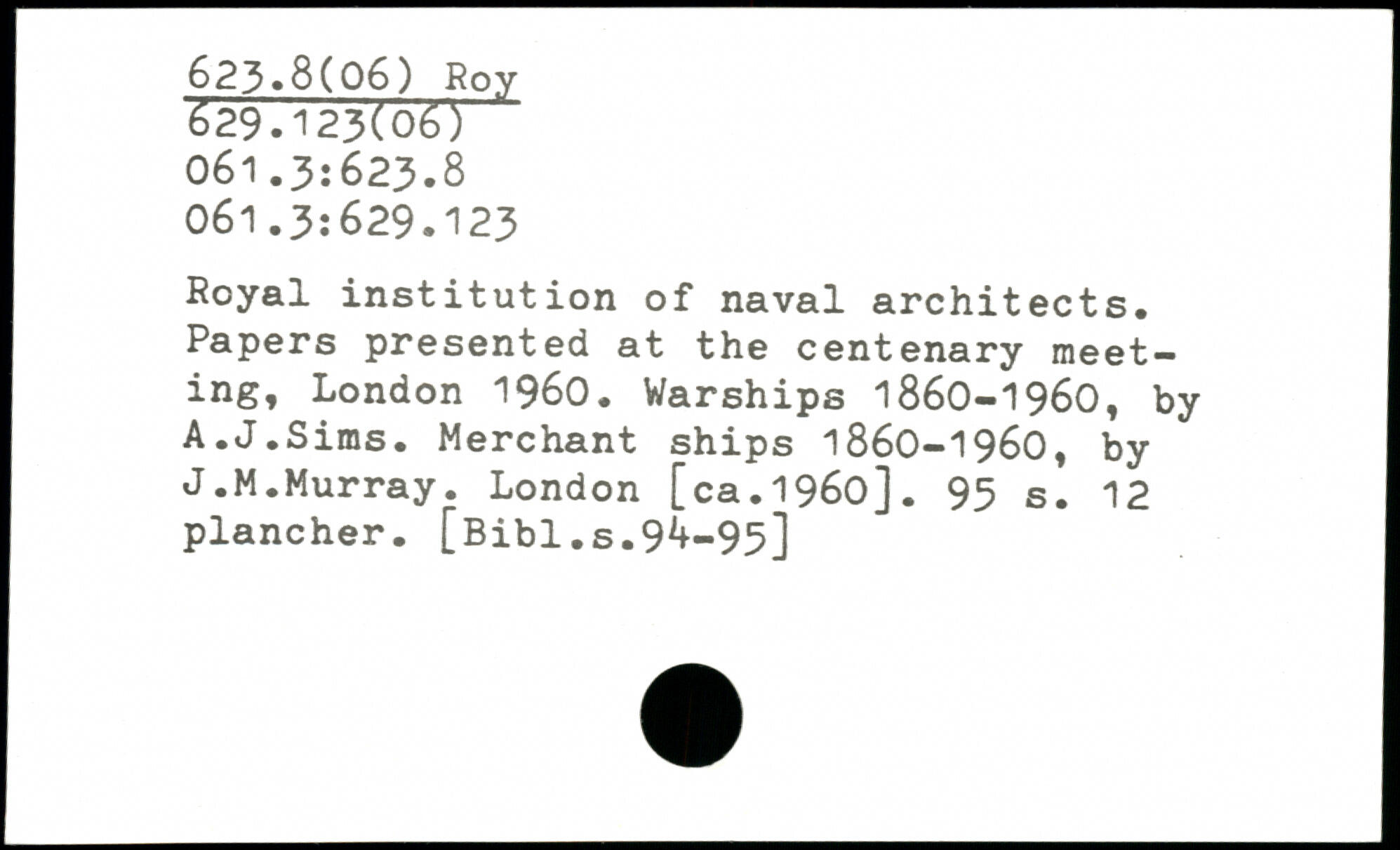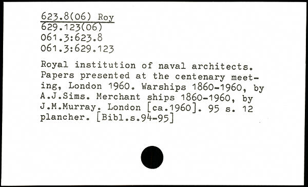 Royal institution of naval architects. Papers presented at the centenary meeting