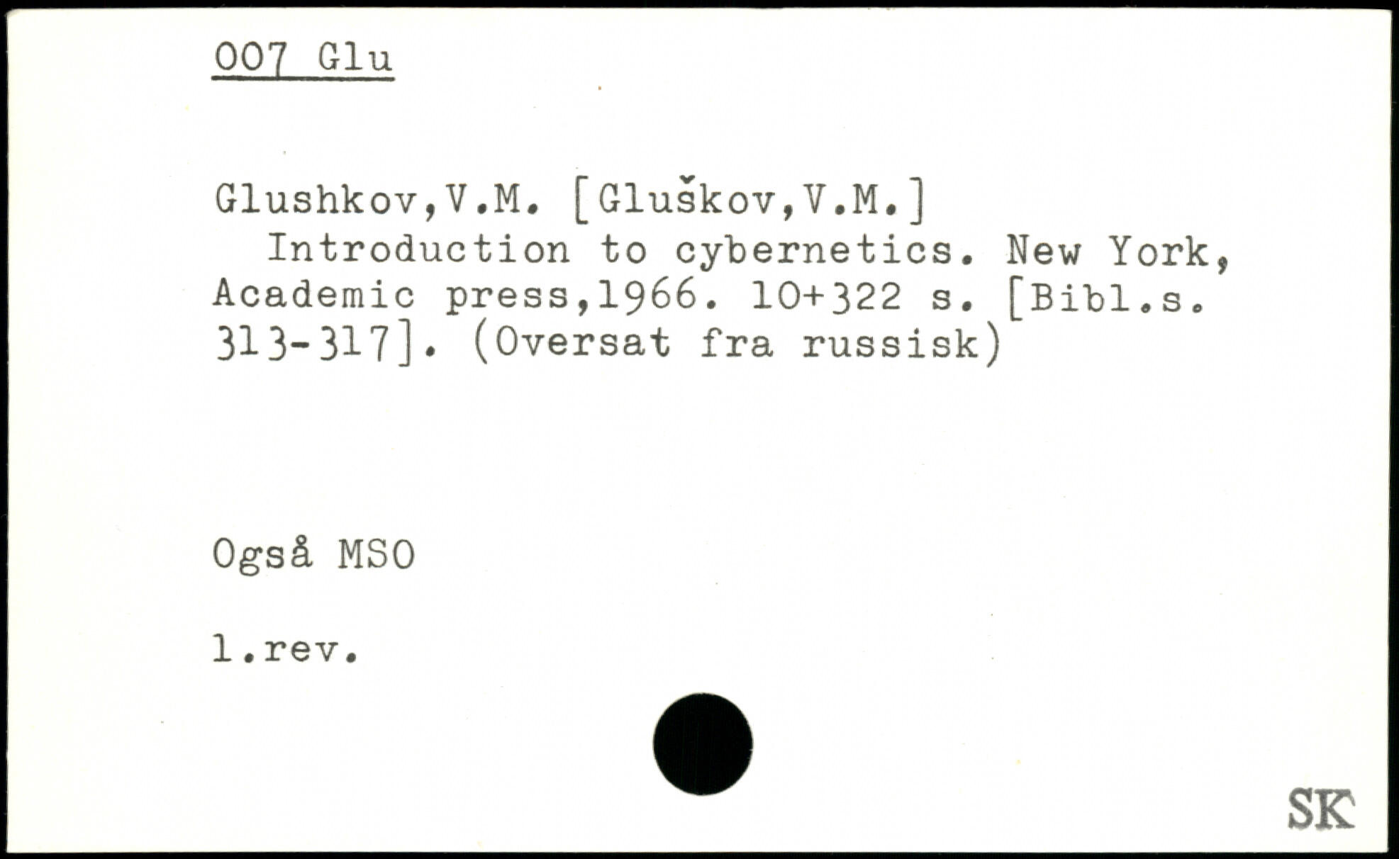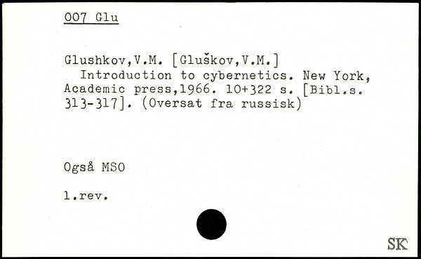 Glushkov,V.M. [Gluskov,V.M.] Introduction to Cybernetics.