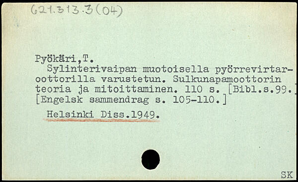 Sylinterivaipan muotoisella pyörrevirtar-oottorilla varustetun. Sulkunapamoottorin teoria ja mitoittaminen.