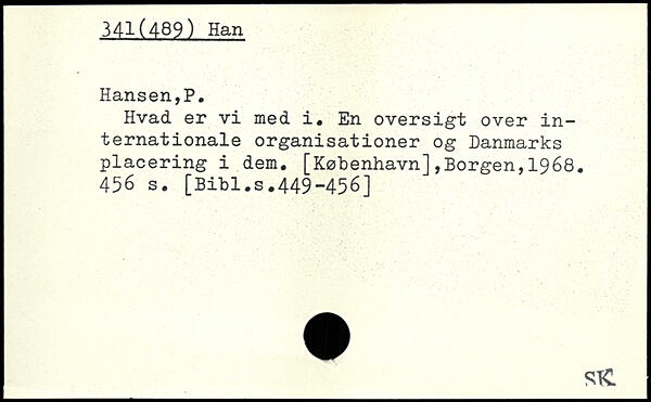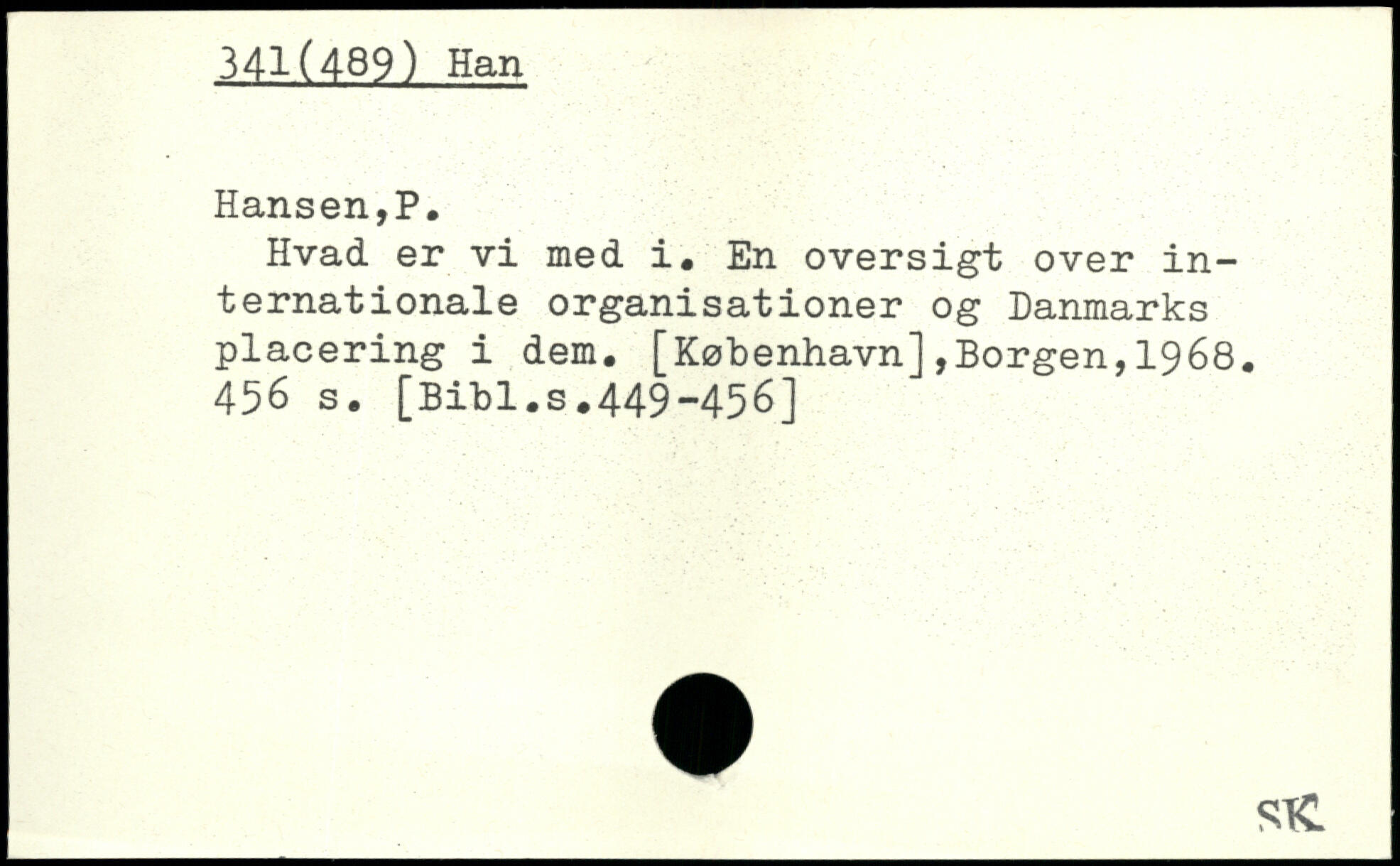Hvad er vi med i. En oversigt over internationale organisationer og Danmarks placering i dem. [København],Borgen,1968.