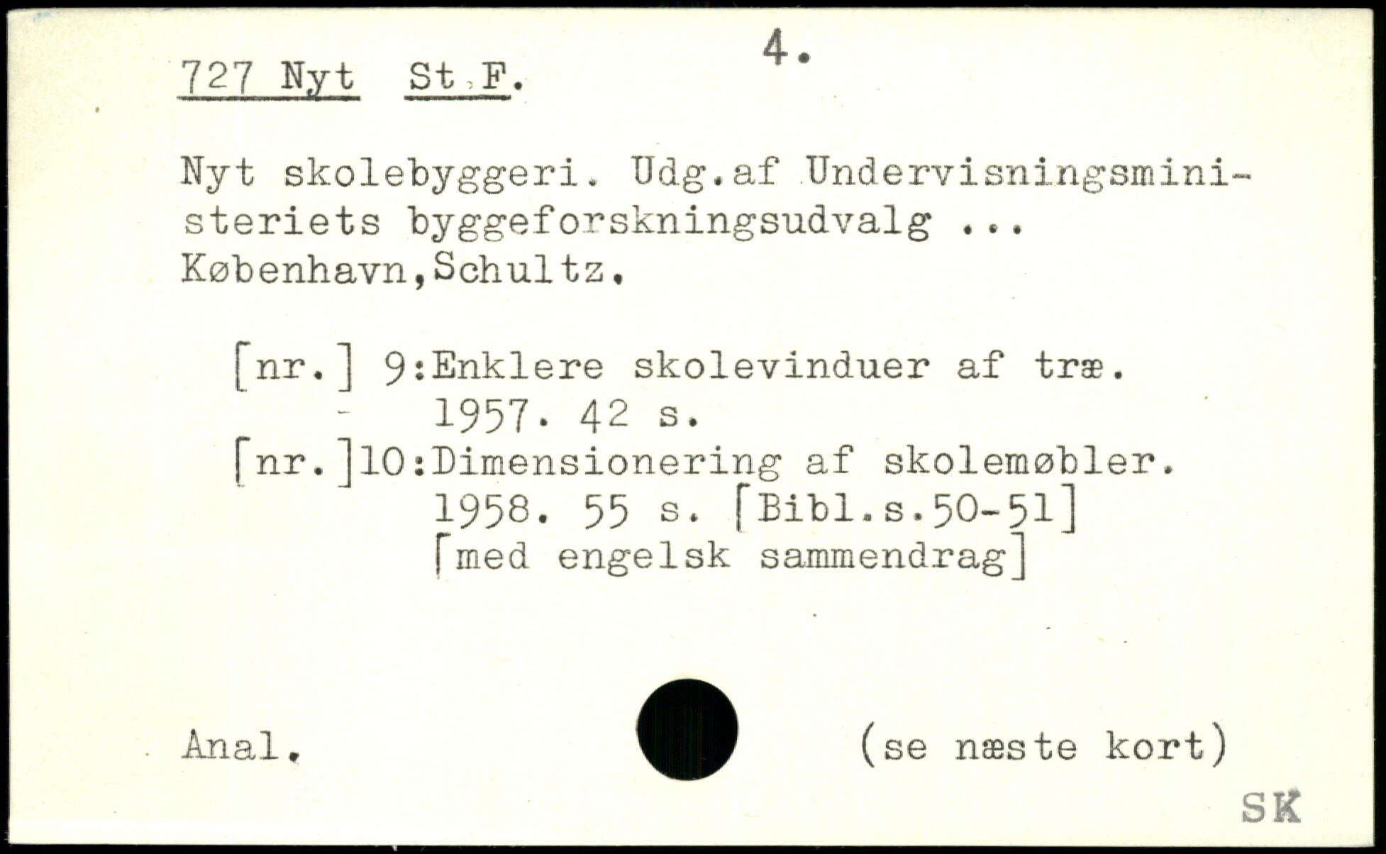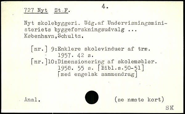 Nyt skolebyggeri. Udg.af Undervisningsministeriets byggeforskningsudvalg København,Schults, [nr.] 9 Enklere skolevinduer af træ. ! 1957.
