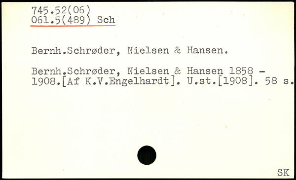 Bernh.Schrøder, Nielsen & Hansen. Bernh.Schrøder, Nielsen & Hansen 1858 -1908.[Af K.V.Engelhardt]. U.st.[1908].