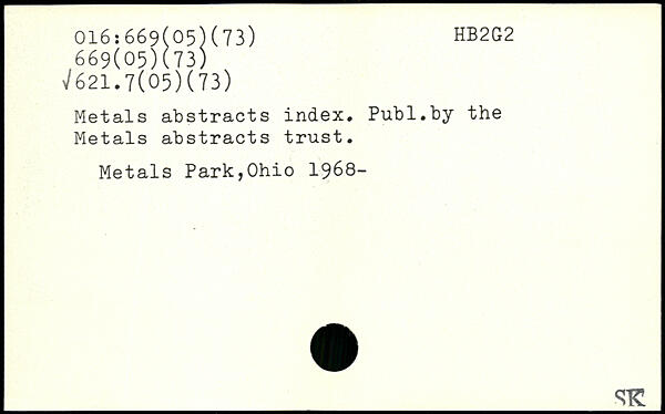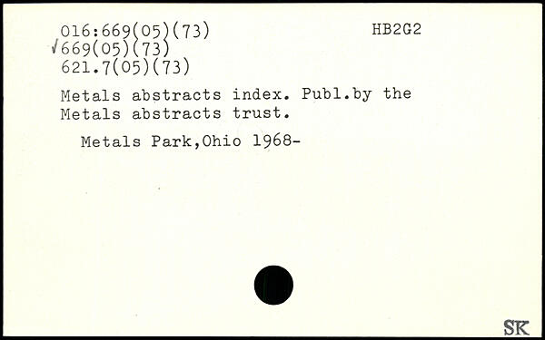 UDK: 016:669(05)(73), 669(05)(73), 621.7(05)(73)