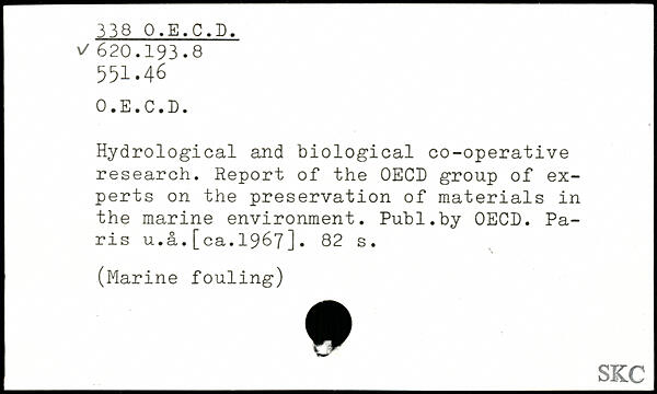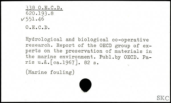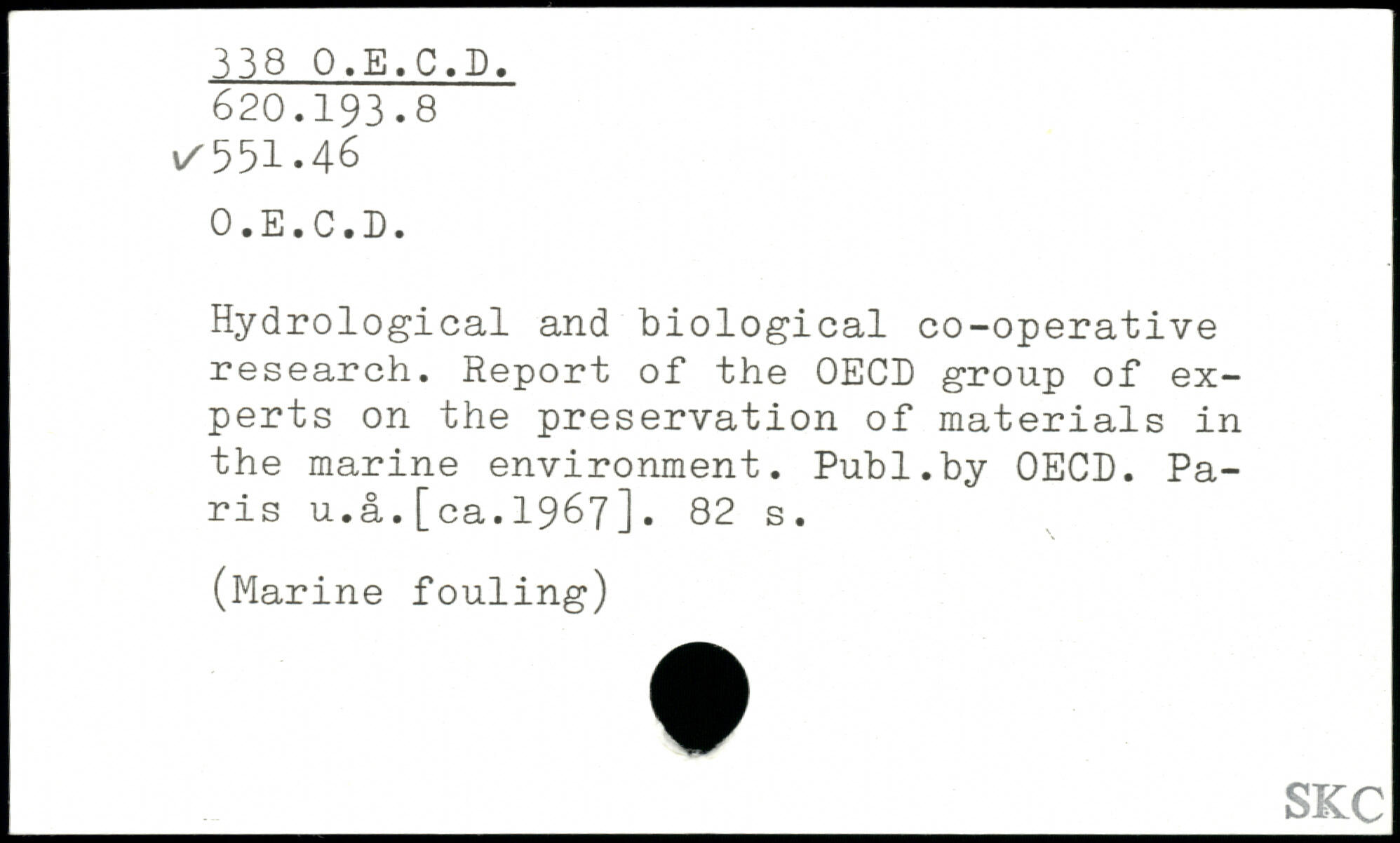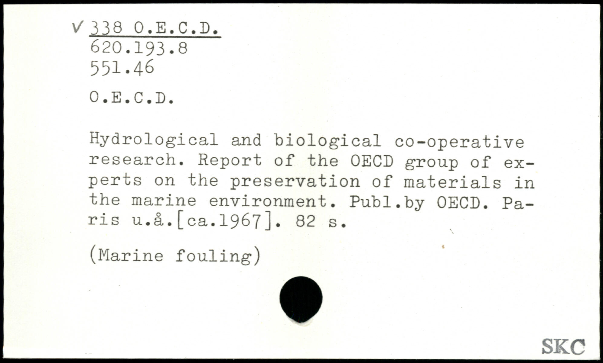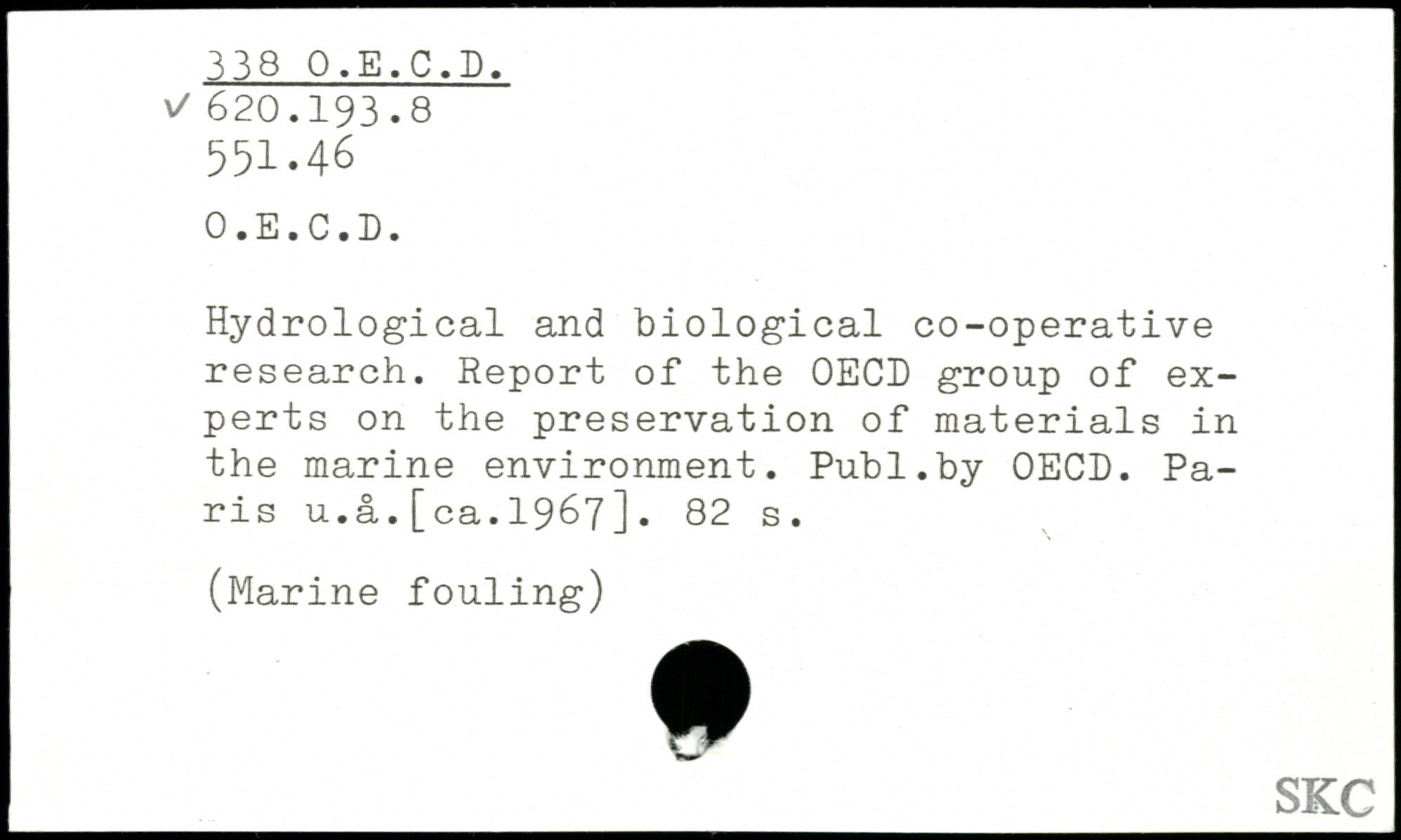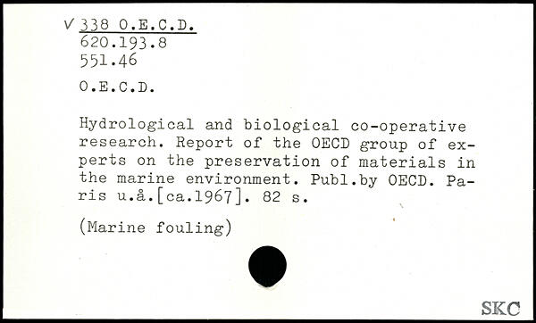 Hydrological and biological co-operative research. Report of the OECD group of experts on the preservation of materials in the marine environment.
