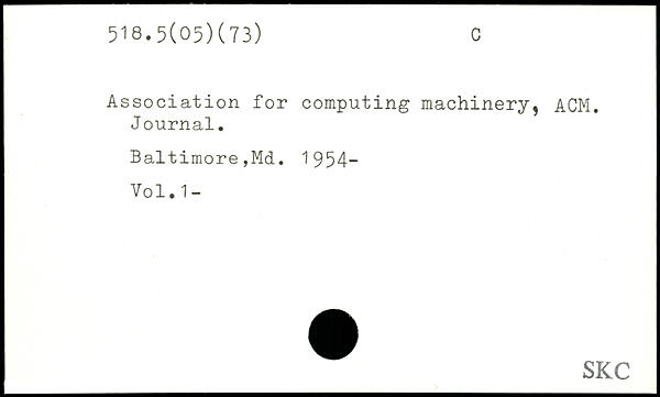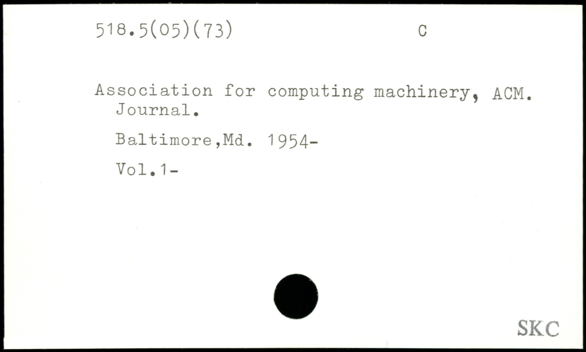 Association for computing machinery, ACM. Journal. Baltimore,Md. 1954-