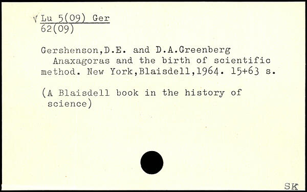 Anaxagoras and the birth of scientific method. New York,Blaisdell,19^4.