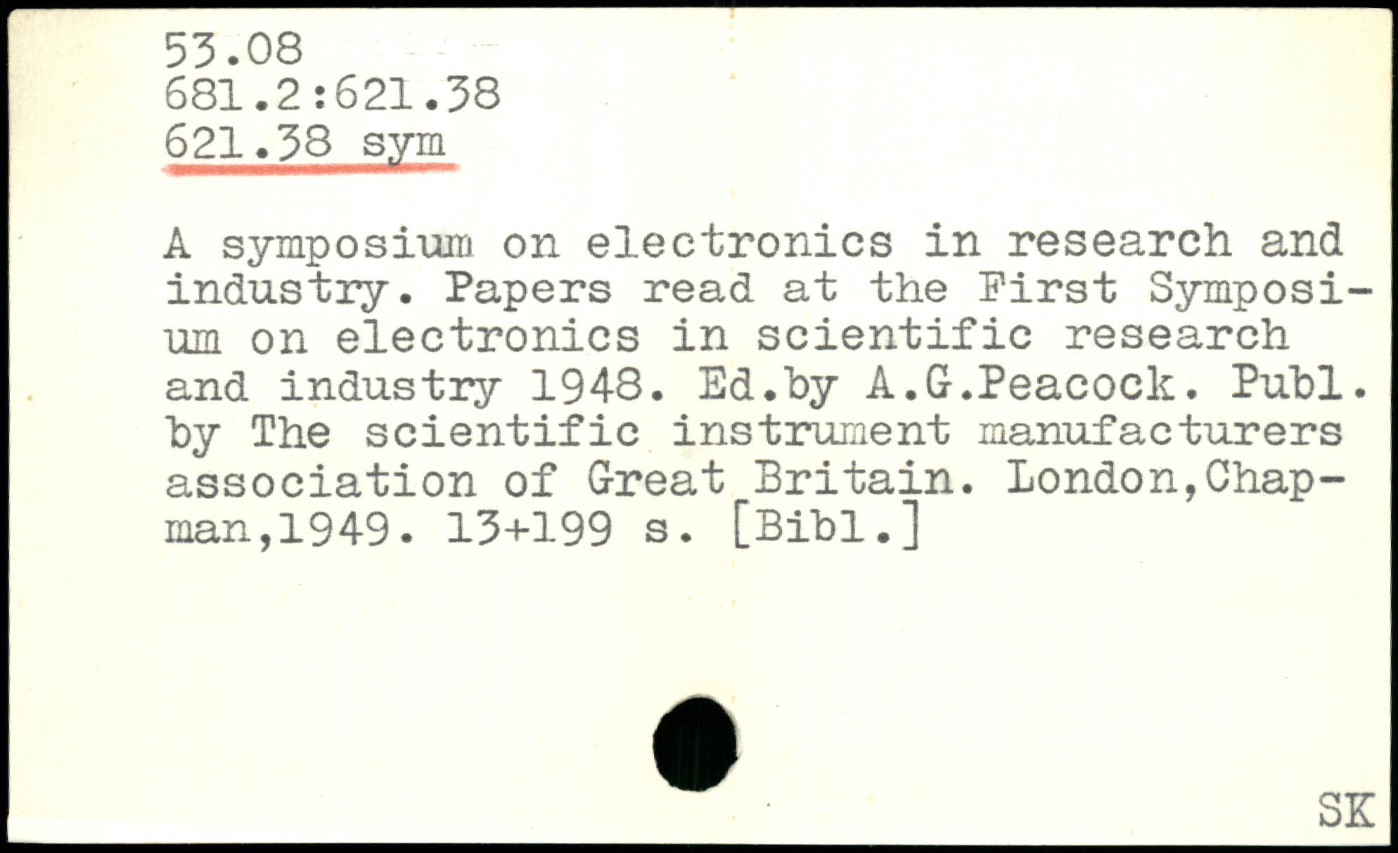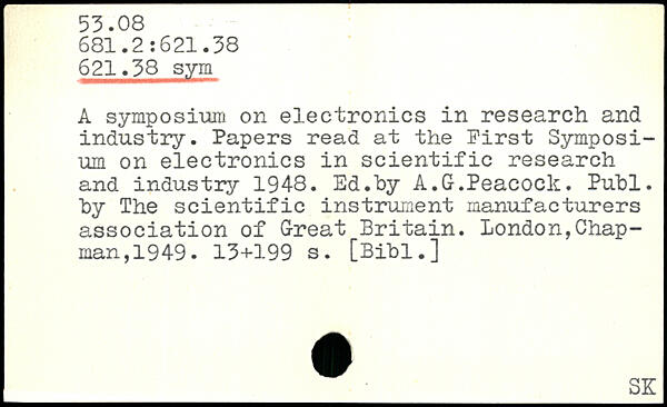 A symposium on electronics in research and industry. Papers read at the First Symposium on electronics in scientific research and industry 194-8. Ed.by A.G.Peacock.