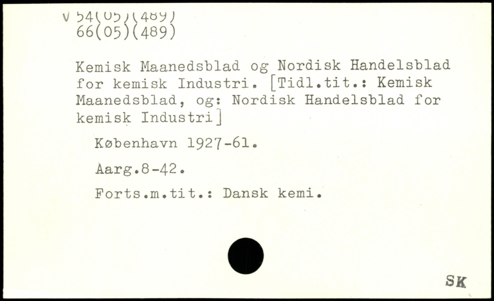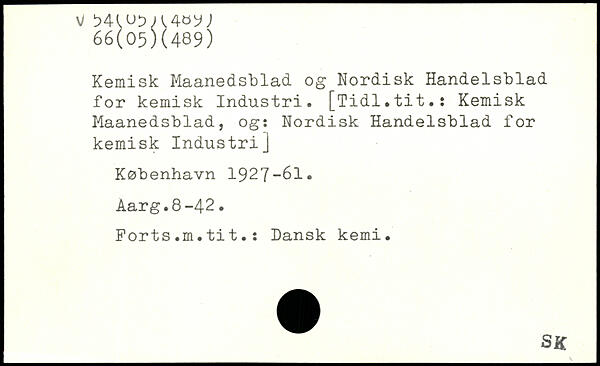 Kemisk Maanedsblad og Nordisk Handelsblad for kemisk Industri. [Tidl.tit.: Kemisk Maanedsblad, og: Nordisk Handelsblad for kemisk Industri]