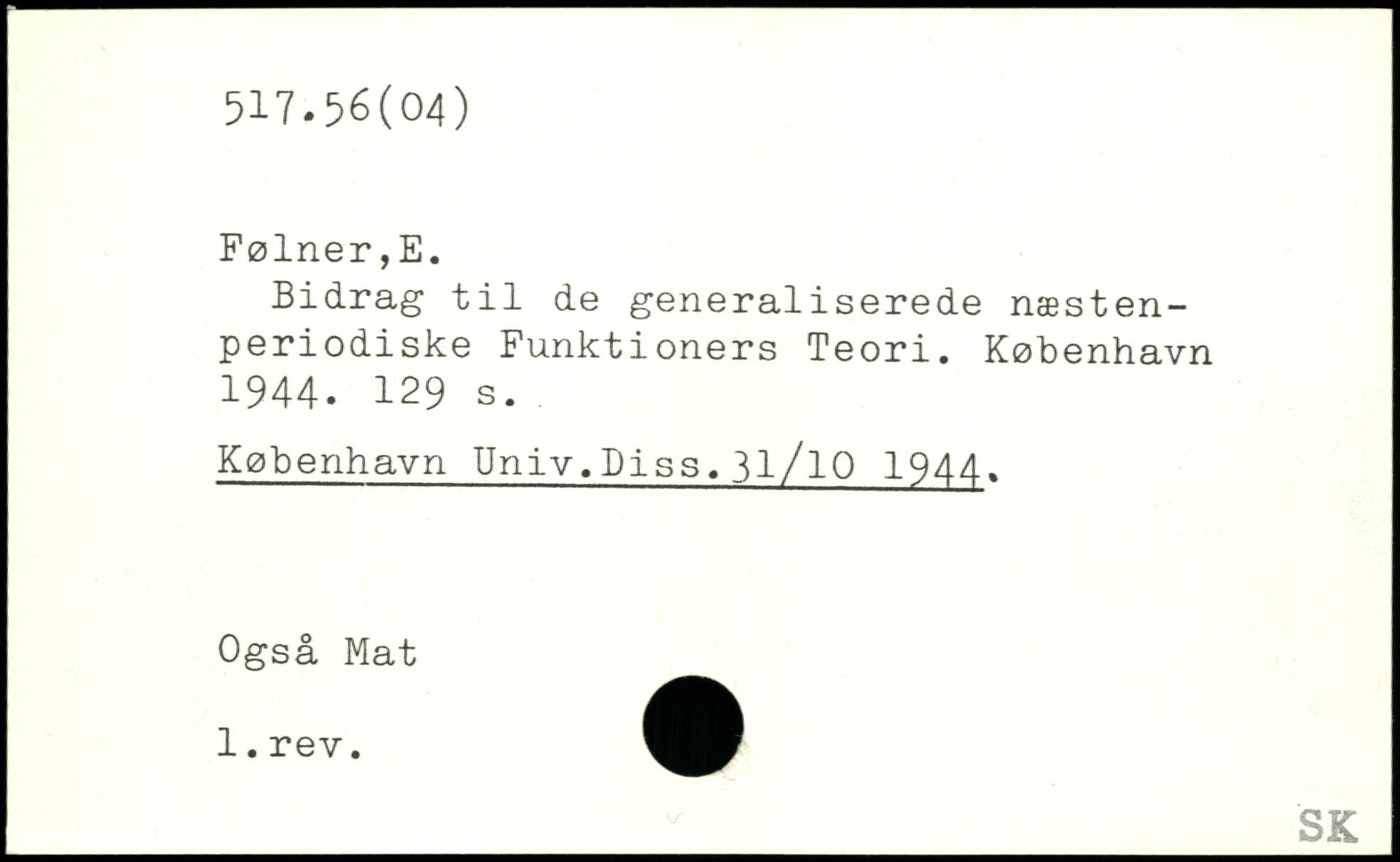 Bidrag til de generaliserede næstenperiodiske Funktioners Teori.
