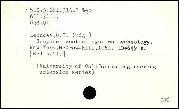 Leondes,C6To (udg0) Computer control systems technology, New ¥ork,McGraw-Hill,1961, IO