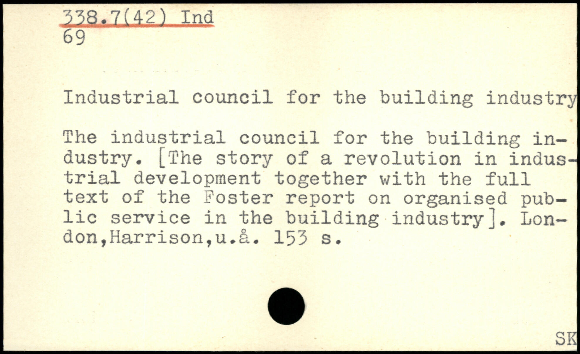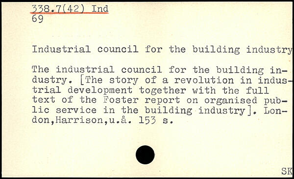 Industrial council for the building industry The industrial council for the building industry, [The story of a revolution in industrial development together v/ith the full text of the Foster report on organised public service in the building industry], London,Harrison,u,it.