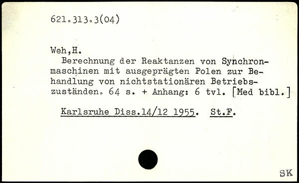 Berechnung der Reaktanzen von Synchronmaschinen mit ausgeprägten Polen zur Behandlung von nichtstationären Betriebszuständeno