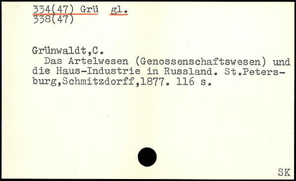 Das Artelwesen (Genossenschaftswesen) und die Haus-Industrie in Russland. St.