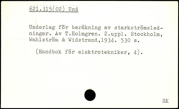 Underlag för beräkning av starkströmsled-ningar. Av T.Holmgren.