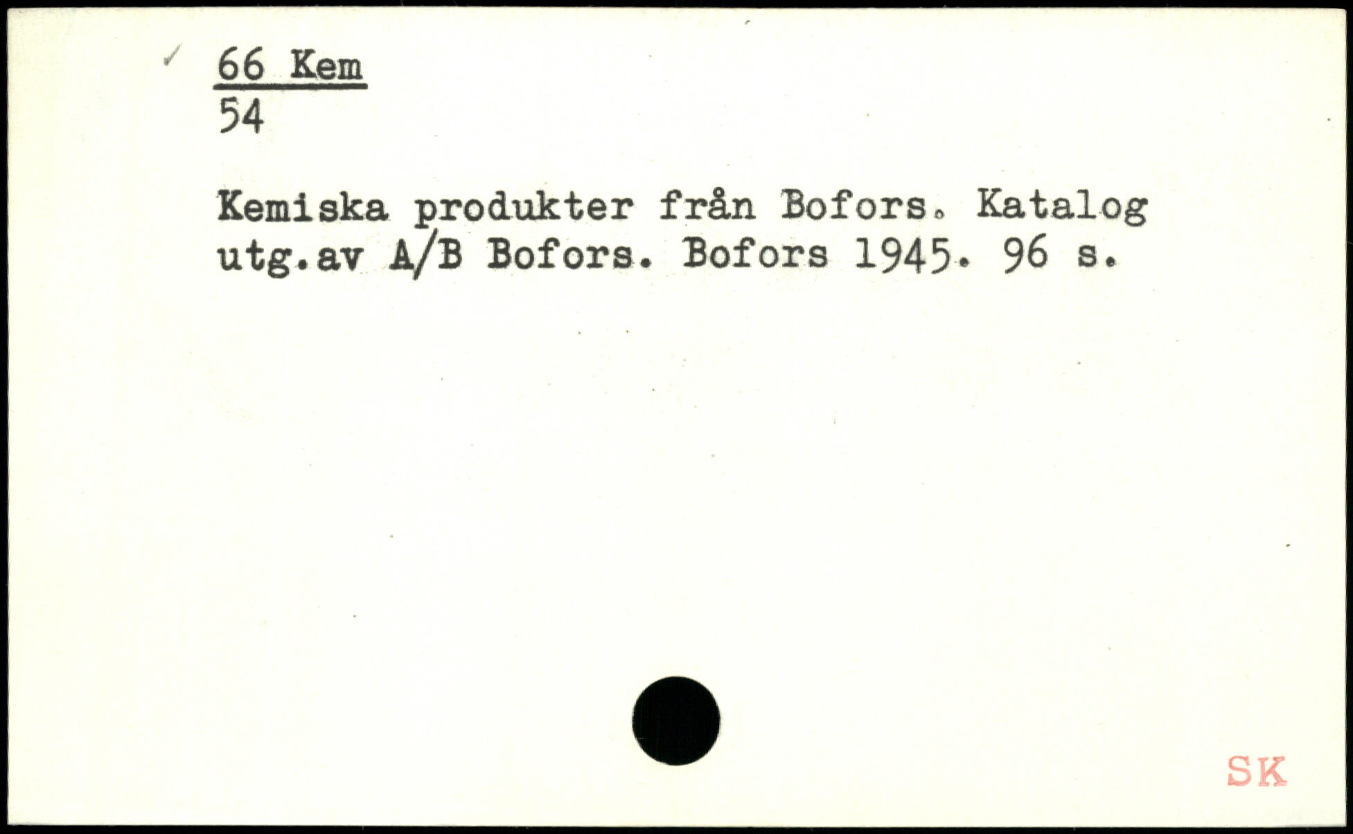 Kemiska produkter från Bofors, Katalog utg.av A/B Bofors. Bofors 1945