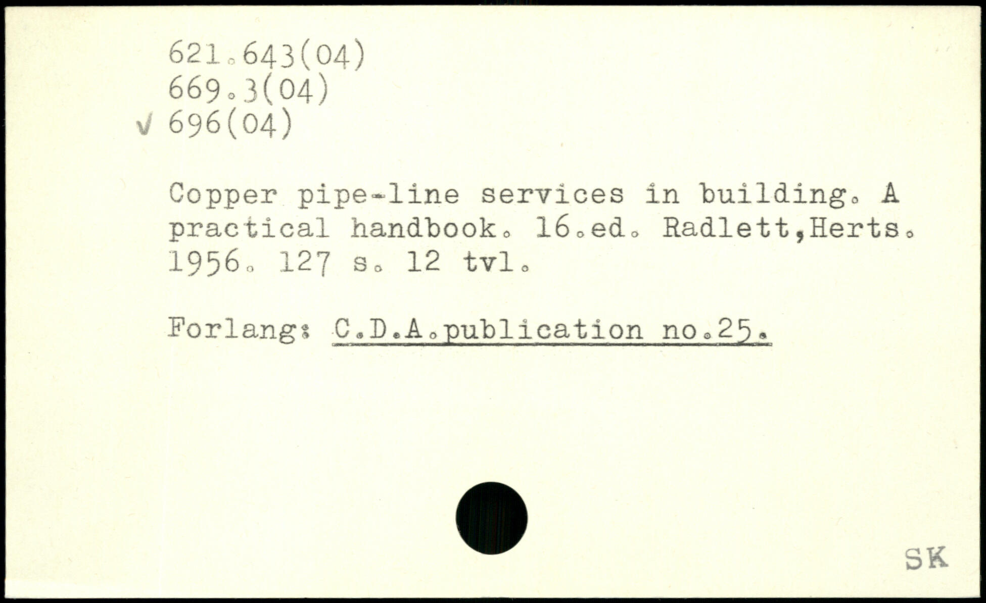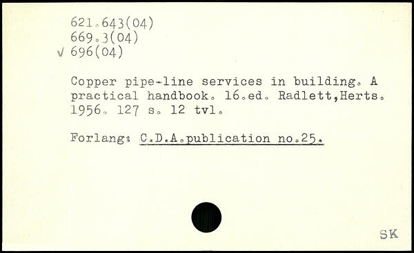 Copper pipe-line services in building, A practical handbook, l6,ed