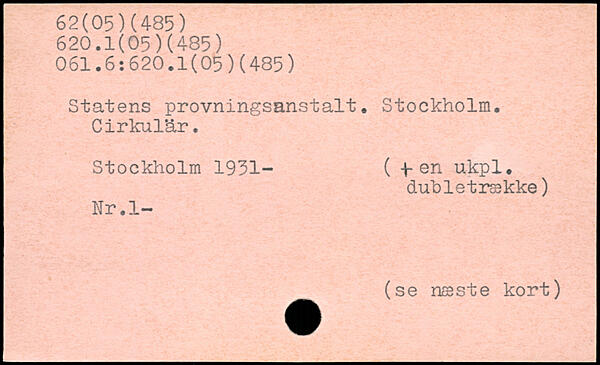 Statens provningsanstalt, Stockholm. Cirkulär.