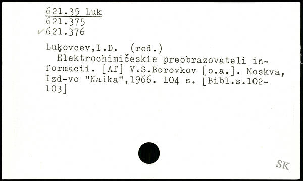 Lu]jovcev,I .D. (red.) Elektrochimiceskie preobrazovateli in-1 ormacii. |^A-f] V.S.Borovkov £o.a.J. Moskvaj Izd-vo "Naika", 1966.