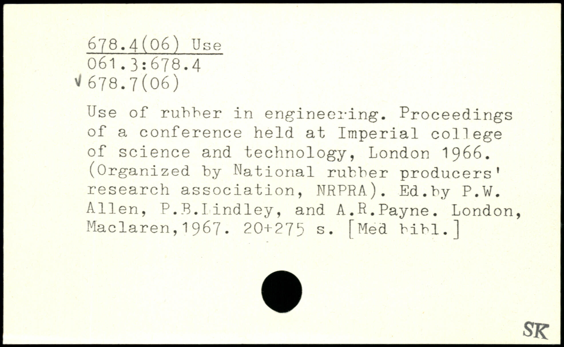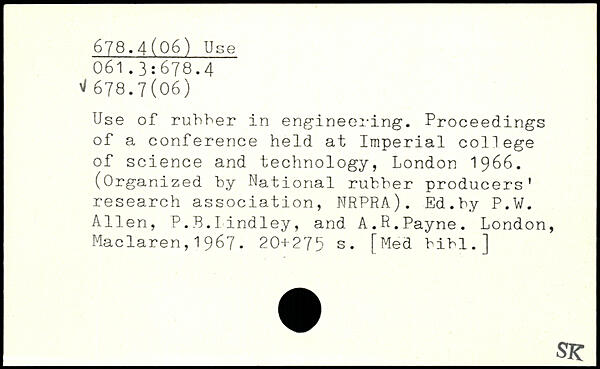 Use of rubber in engineering. Proceedings of a conference held at Imperial college of science and technology