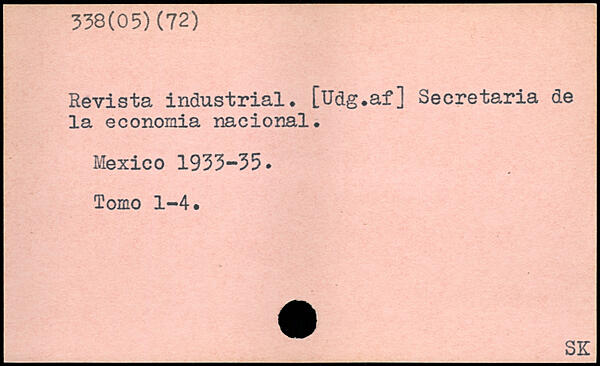 Hevista industrial. [Udg.af] Seeretaria de la economia nacional. Mexico 1933-35. Tomo 1-4.